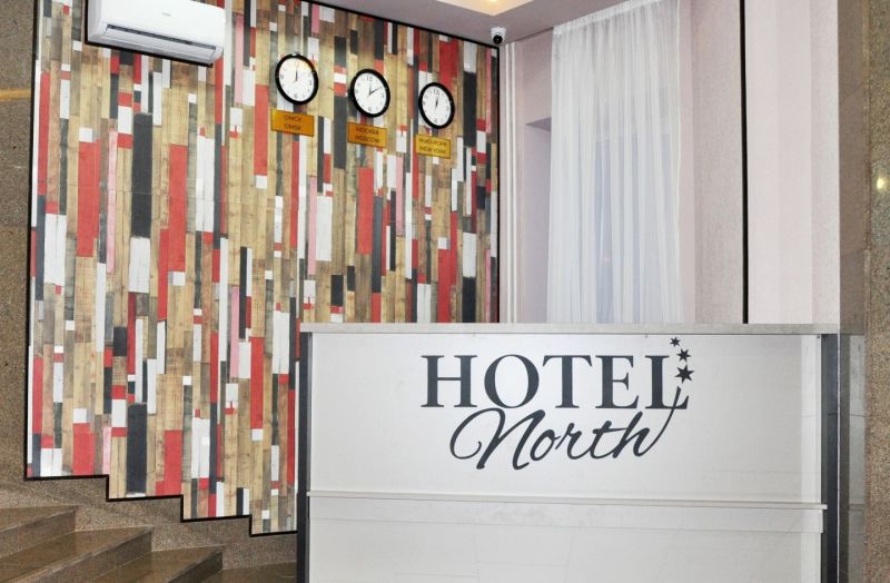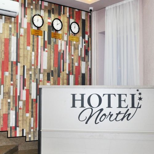 Отель «North» находится в 5 минутах ходьбы от центра Нового Уренгоя. В шаговой доступности располагаются ТЦ «Ямал» и «Арктика», каток «Льдинка», кинотеатр «Октябрь», озеро Молодежное и лесной массив. Дорога до железнодорожного вокзала занимает около 5 минут на автомобиле.