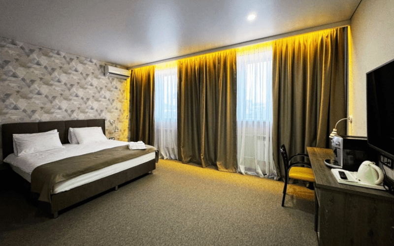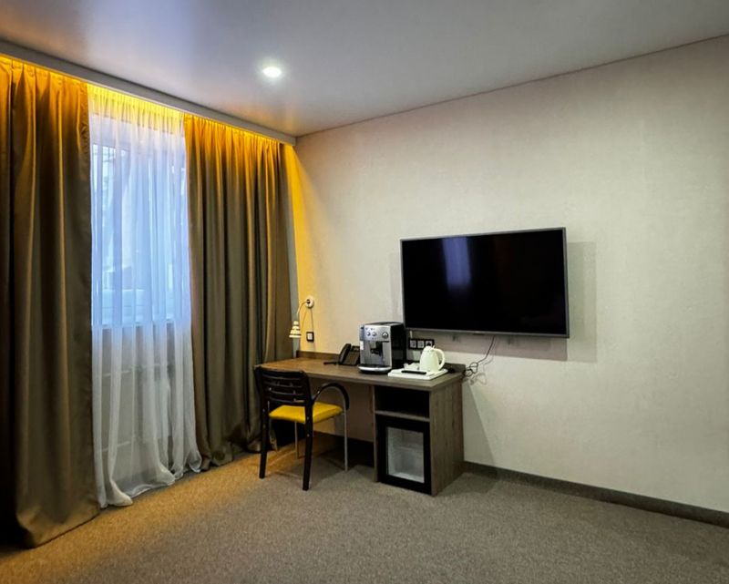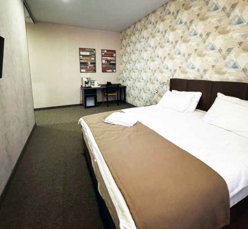 Гостиница занимает пятиэтажный корпус и включает 34 номера нескольких категорий. Каждая комната оснащена всем, что необходимо для комфортного отдыха: большой удобной кроватью, рабочим уголком, телевизором, сплит-системой, телефоном. Все номера включают собственный санузел с душем или ванной. Гостям доступно подключение к беспроводному интернету.